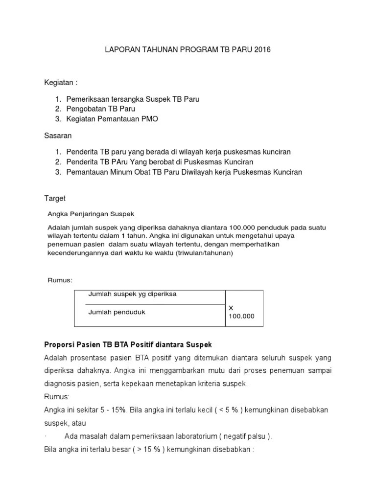 Contoh Laporan Bulanan Tb Paru Pdf : Surveilans Penyakit Yang Dapat Dicegah Dengan Imunisasi Ppt Download : Kabupaten kuburaya kasus tuberkulosis (tb).